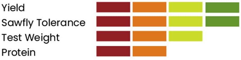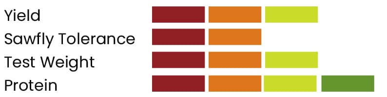 Gunsmoke is a Clearfield spring wheat that handles stress well with very good yield & protein. Medium maturity, medium height.